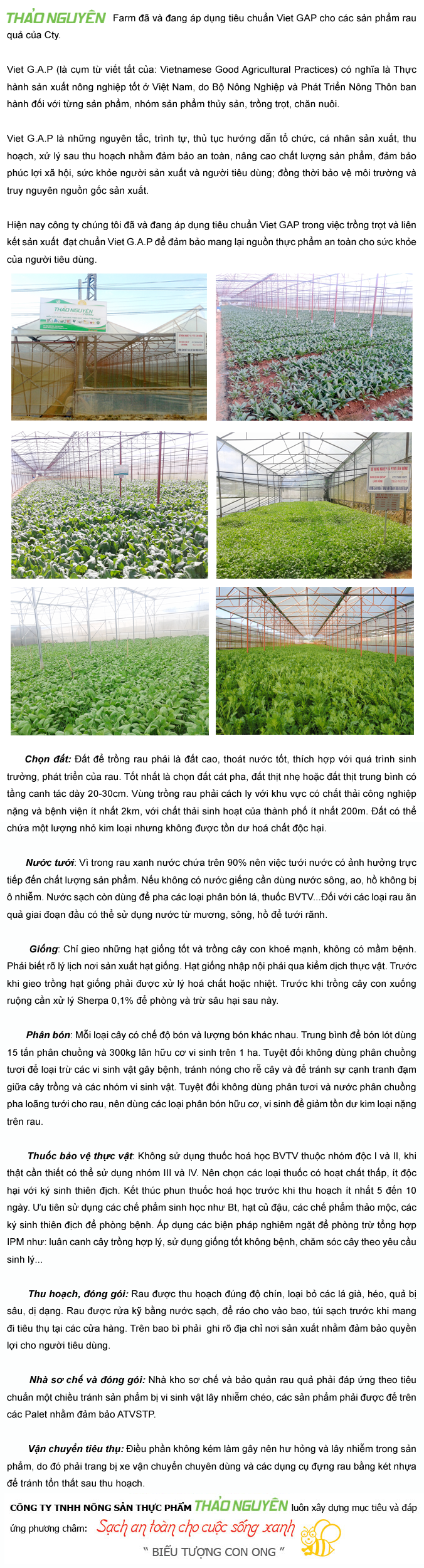 THẢO NGUYÊN FARM Áp dụng VIETGAP