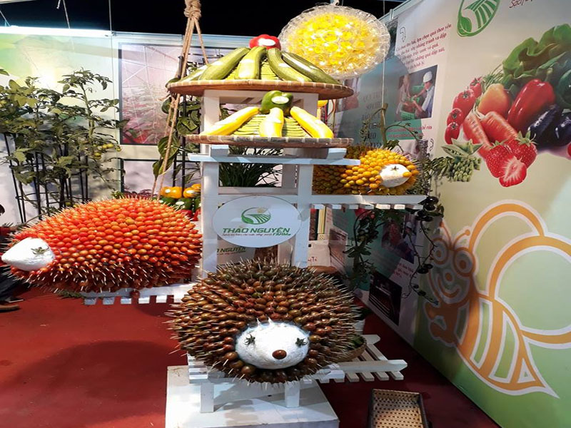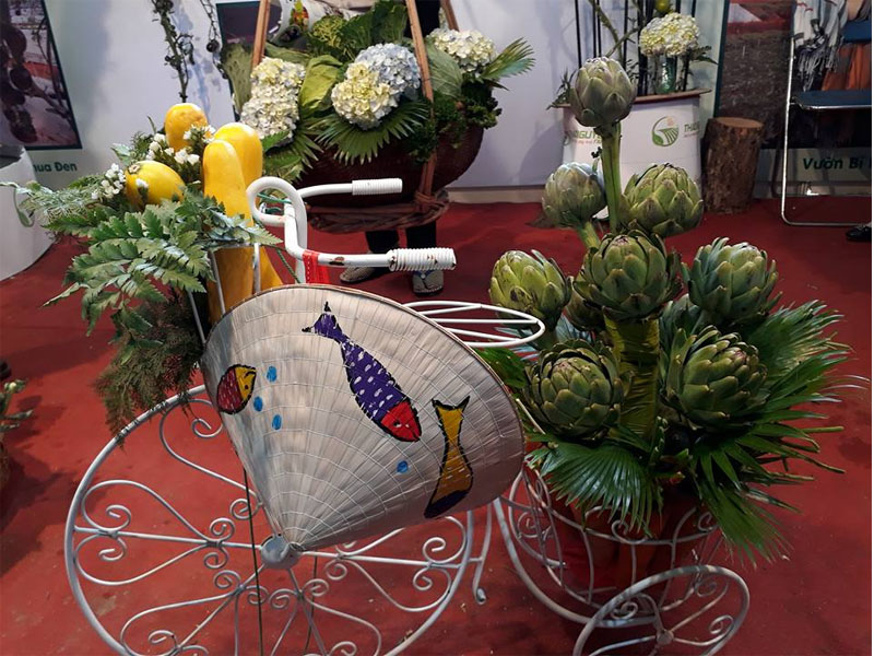 Du khách tham quan rất hứng thú với các tạo hình nghệ thuật đặc sắc như bình hoa bằng Bắp cải tím với những bông hoa từ Bông hẹ; gánh hàng rau với Cải thảo, Bắp cải trắng và Bắp cải trái tim điểm tô thêm Hoa Cẩm tú cầu; xe đạp với Bí ngòi vàng và Cà rốt ; ông già tuyết với sự kết hợp giữa các ly nhựa và hoa cúc; các chú nhím nâu- vàng - đỏ được kết từ cà chua socola- roseberry vàng đỏ... Đặc biệt điểm nhấn là Trái tim rực rỡ với gần 400 bông Hoa đồng tiền đính kèm lá và quả thông khô...