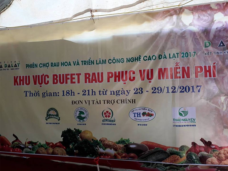 Nằm trong chuỗi hoạt động của lễ hội Fesitival Hoa Đà Lạt 2017, tiệc Buffet miễn phí là một điểm thu hút với khung giờ phục vụ từ 18h đến 20h tối trong suốt lễ hội. Hàng ngàn du khách trong và ngoài nước, cùng người dân địa phương đến thưởng thức buffet rau miễn phí. Các món ăn được chế biến không quá cầu kì như rau luộc, salad xà lách, khoai chiên, các loại cà bi, dưa baby thái lát, xiên nướng rau củ... nhưng khách tham quan đều cảm thấy hài lòng.